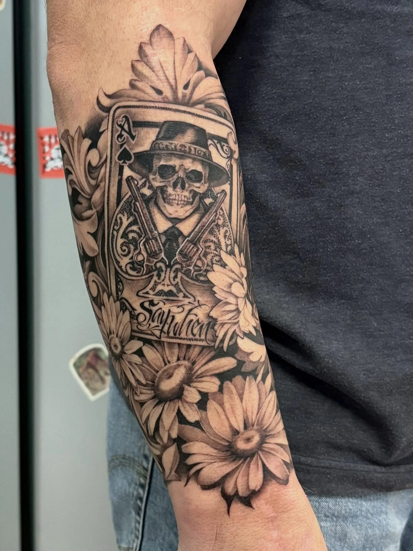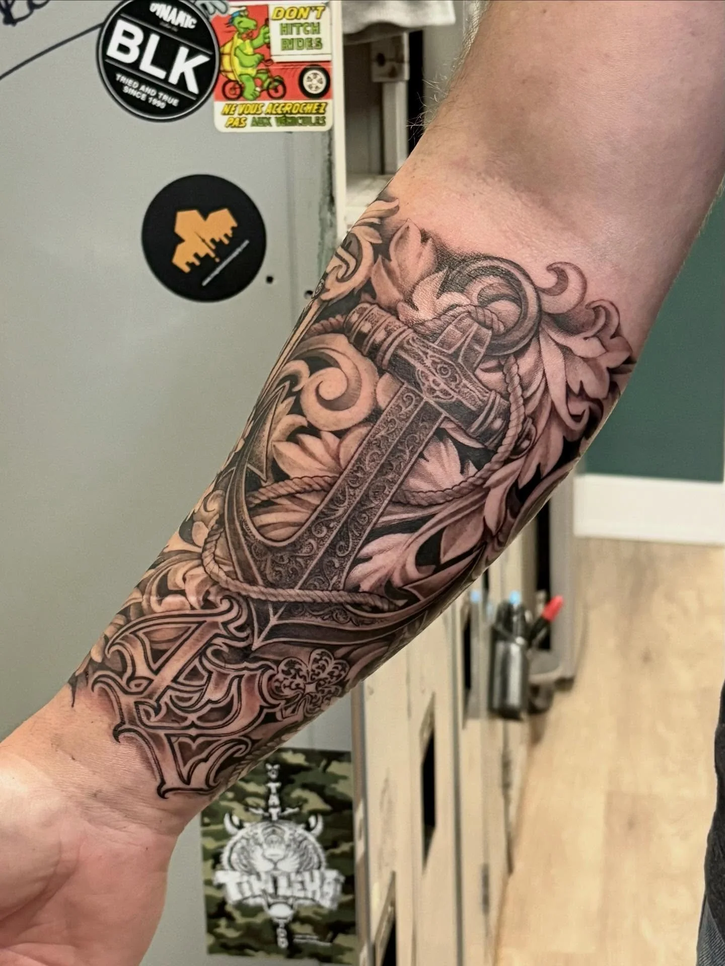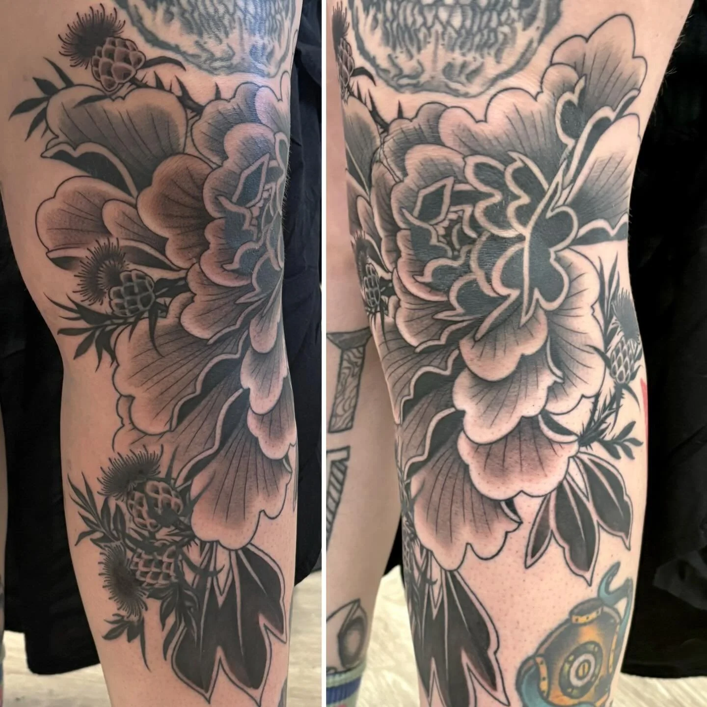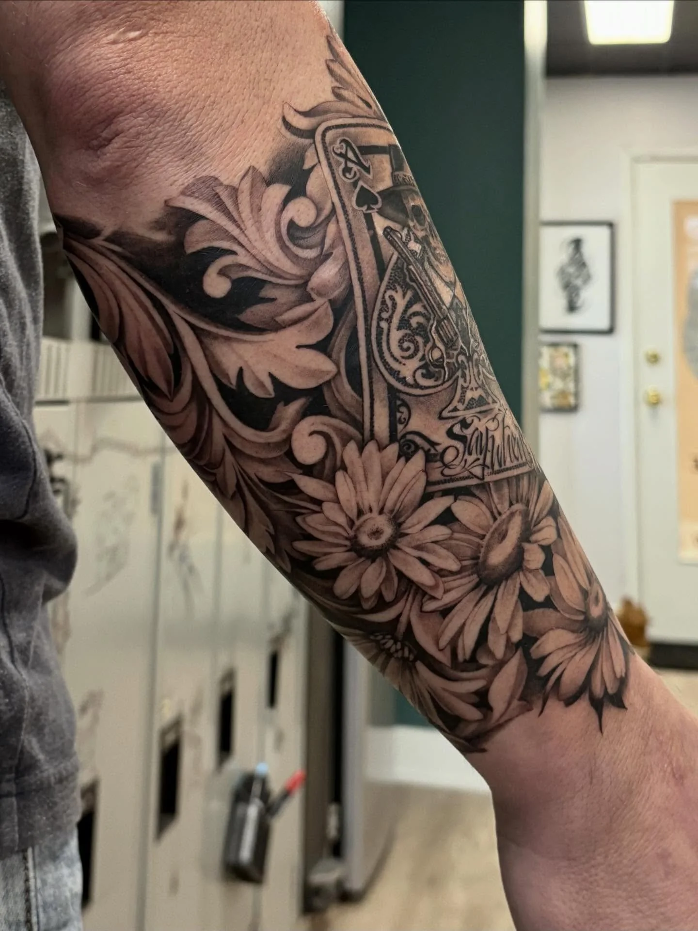 Mostly healed sleeve with fresh highlights and last touches for Trevor. Thank you for your dedication to this piece, for your trust in me as well. So much fun!
